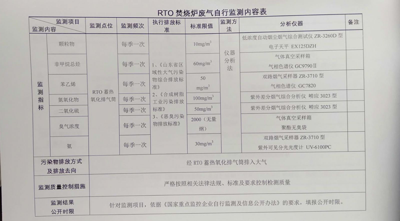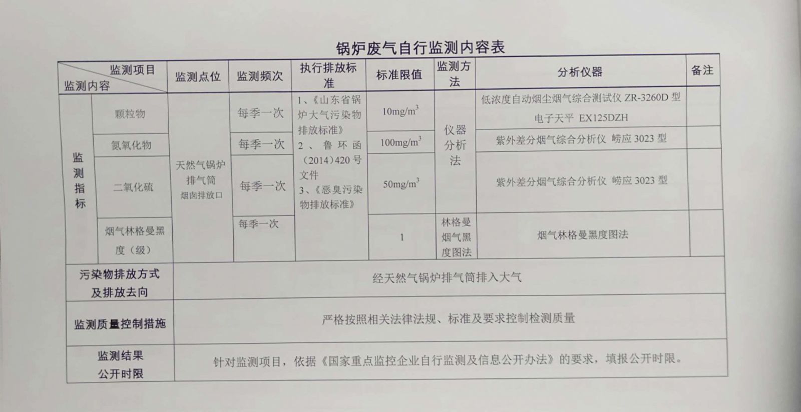 污染源自動監(jiān)控信息表