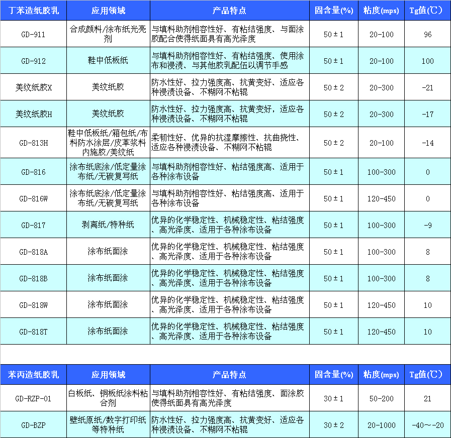 主要產(chǎn)品為丙烯酸脂類乳液和丁苯膠乳。公司擁有現(xiàn)代化的自動生產(chǎn)線和先進的檢測儀器,依靠嚴(yán)格的管理、精湛的生產(chǎn)工藝,先后開發(fā)生產(chǎn)出苯丙、純丙、硅丙、醋丙、羧基丁苯、助劑等六大系列三十多個品種的建筑、紙品、地毯、紡織、防水用乳液及助劑,年生產(chǎn)能力達10萬余噸。