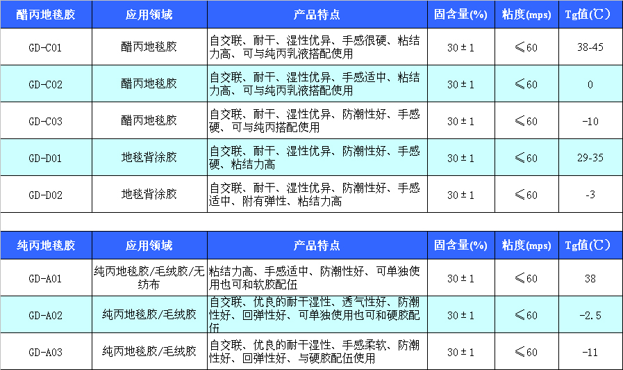 主要產品為丙烯酸脂類乳液和丁苯膠乳。公司擁有現代化的自動生產線和先進的檢測儀器,依靠嚴格的管理、精湛的生產工藝,先后開發(fā)生產出苯丙、純丙、硅丙、醋丙、羧基丁苯、助劑等六大系列三十多個品種的建筑、紙品、地毯、紡織、防水用乳液及助劑,年生產能力達10萬余噸。